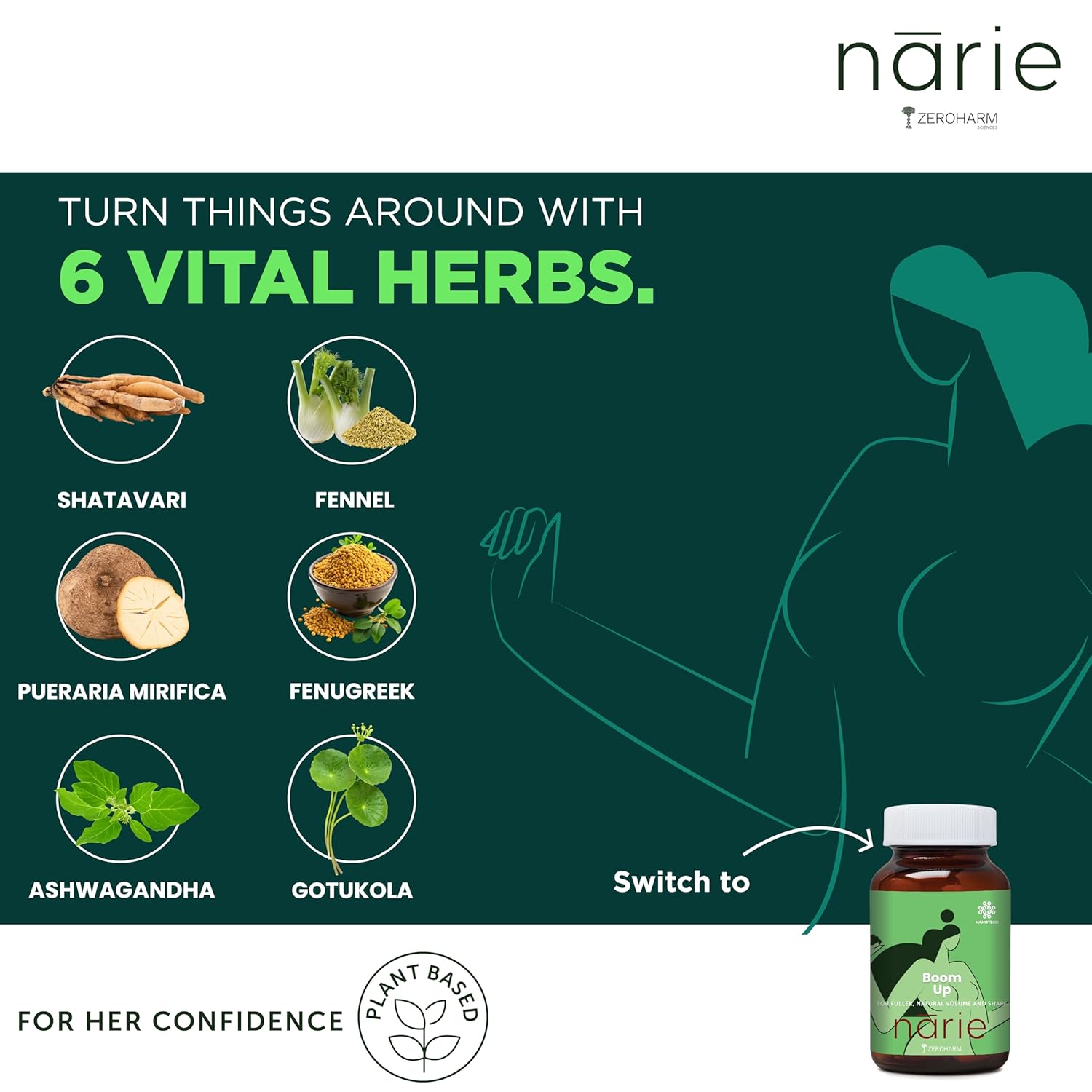 ZEROHARM Narie BoomUp Capsules for Women | 60 caps with Shatavari, Fenugreek & 4 more ingredients to support b-care | Feel healthy & fuller volume |Embrace your natural beauty with this powerful blend.
