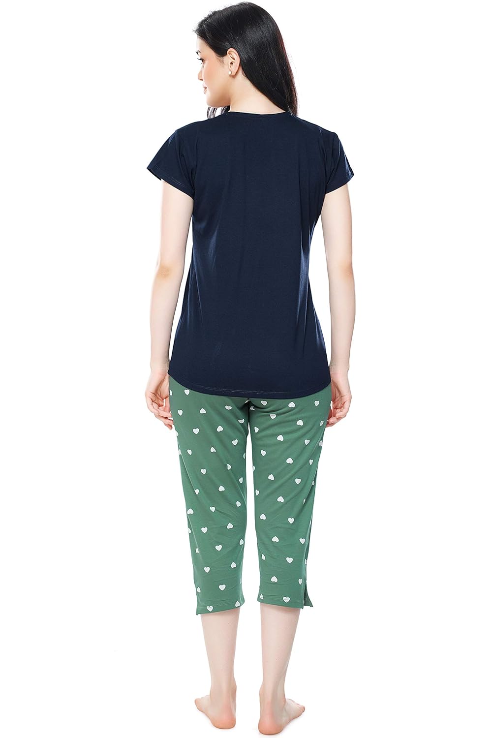 ZEYO Women’s Cotton Heart Printed Night Suit Set of Top & Capri 5233