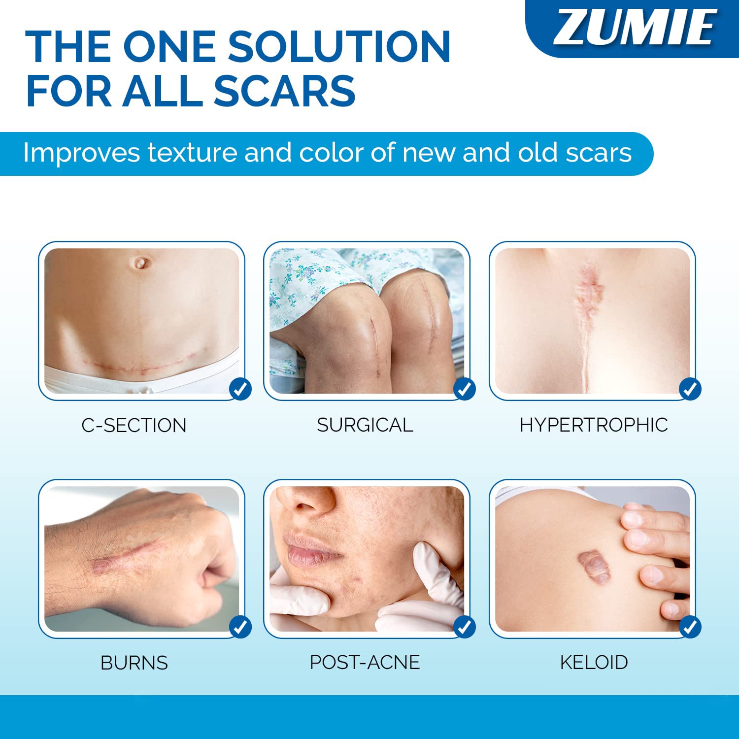 ZUMIE Silicone Scar Removal Sheets Post Surgery & Acne Scars Treatment-2 Month Supply Cica Care Gel Sheets Wound Repair Scar Silicon Soft Long Strips & Sheets 5.7″ x 1.57 (8pcs Scar repair tape)