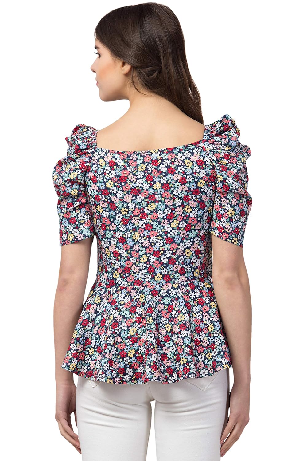 ZUVINO Women’s Rayon Floral Peplum Top with Princess Sleeve; Office wear, Summer Wear